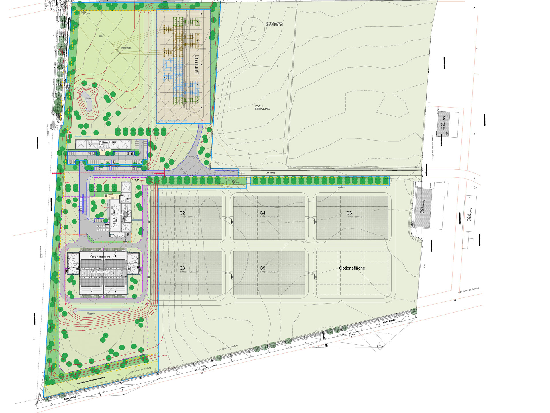 Neubau von zwei Rechenzentren in mehreren Bauabschnitten, wobei der 1. BA die Außenanlagen in Magdeburg als Ergänzung eines bestehenden Rechenzentrums im Innenstadtbereich umfasste.