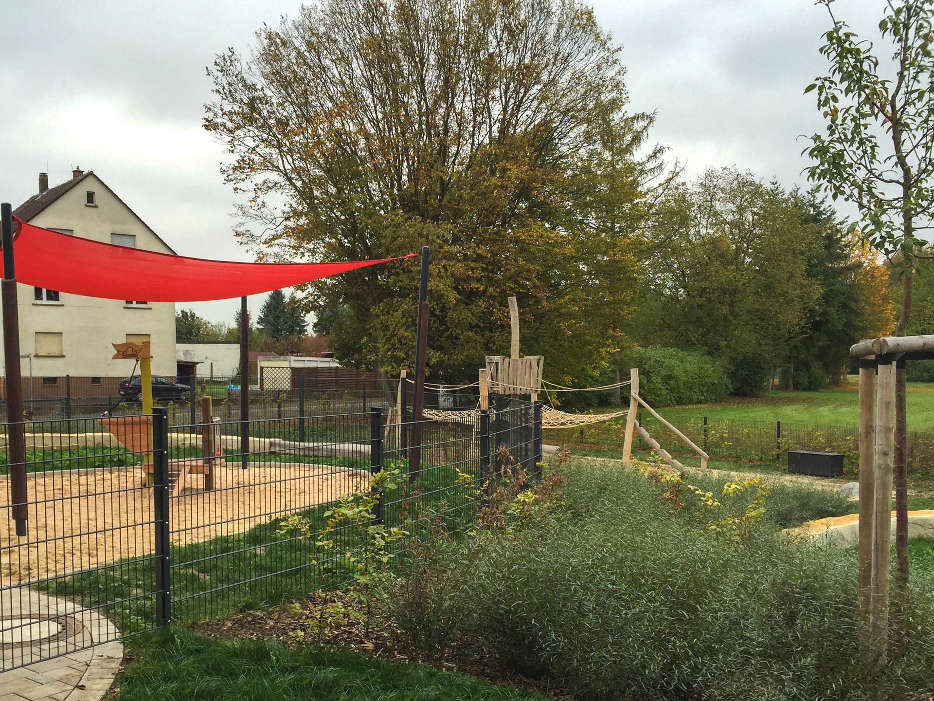 Oberhalb des „Sandsees“, des am tiefsten liegenden Spielplateaus, ist der separierte Spielbereich für die U3-Gruppe angeordnet. An die Pflasterfläche schließt sich in ebener Lage eine Rasenfläche an, in die eine Sandkuhle eingelassen ist. Begrenzt wird der Raum von einer niedrigen Mauer aus Natursteinen. Der Bereich ist mit einem Zaun eingefriedet.