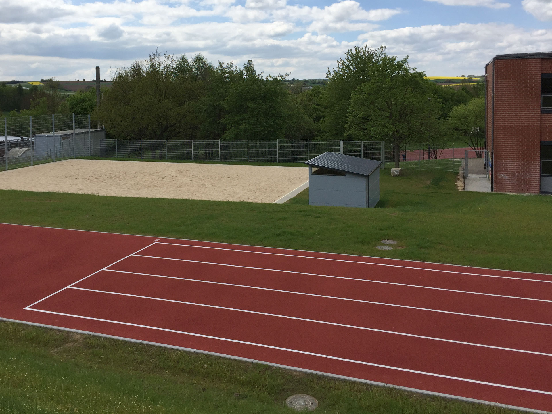 Zusammen mit der Anlage von Laufbahn und Weitsprunggrube entstand ein Volleyball-Sandfeld und ein neues Gerätehaus. Ein vorhandenes Kleinspielfeld konnte mit einem Kunststoffbelag saniert werden.