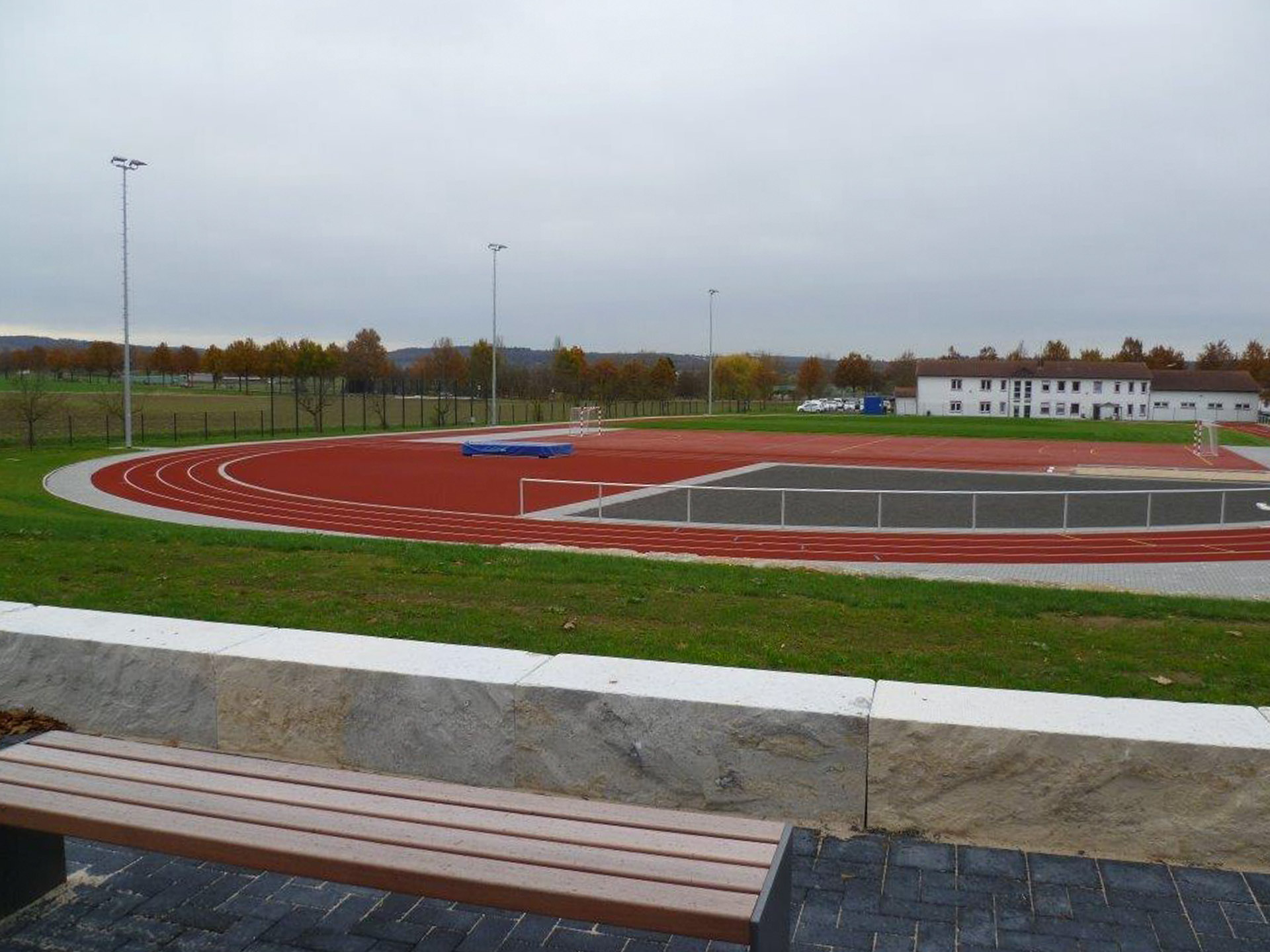 Auch die Bastion wird aus Kalksteinblöcken gebildet. Stellt das grüne Klassenzimmer eine eher nach innen gekehrte Situation dar, so öffnet sich die Bastion im Gegensatz dazu nach außen und ermöglicht einen weiten Blick über das neue Sportfeld und die dort stattfindenden Veranstaltungen.