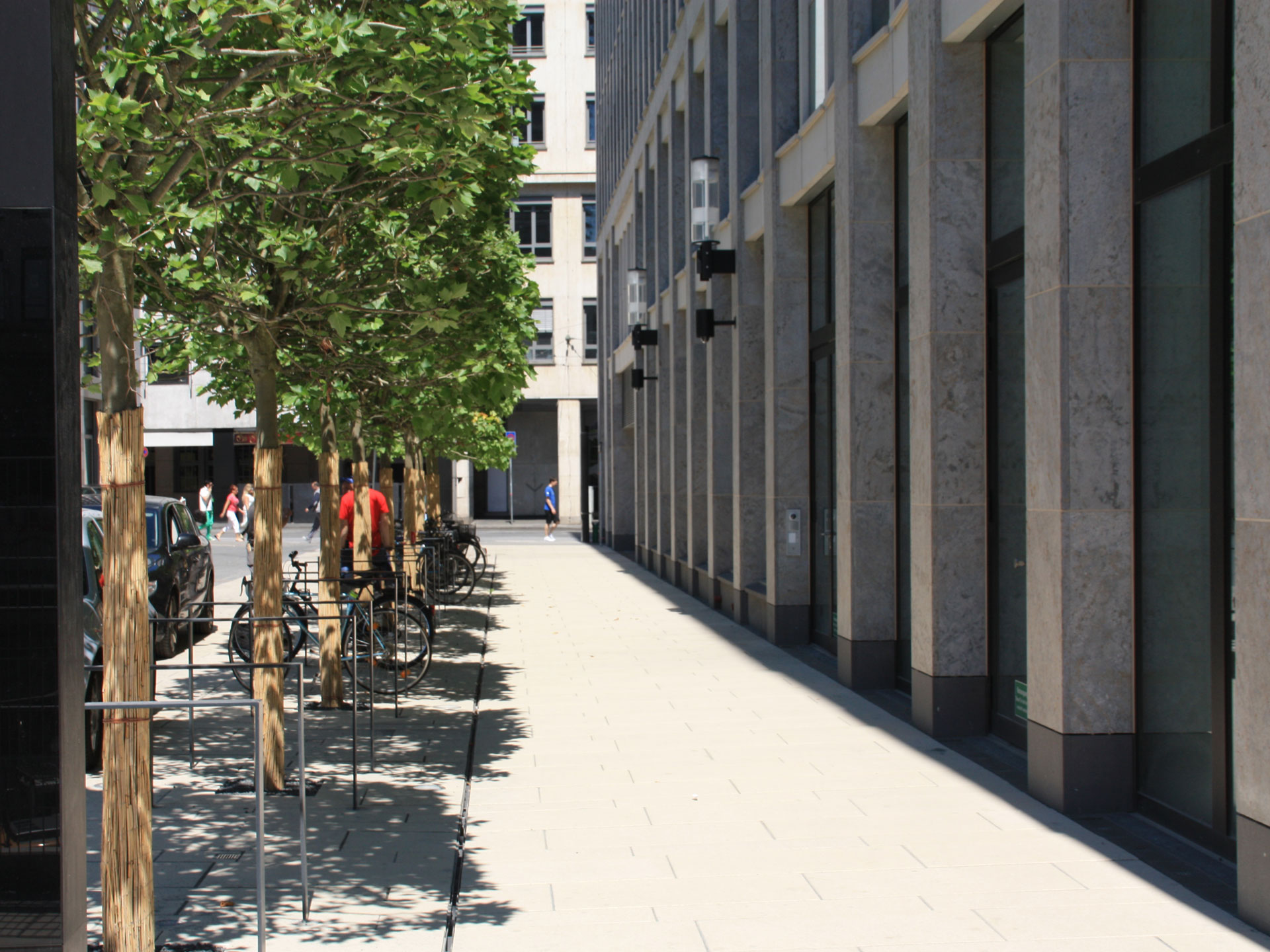 Die minimalistische und einheitliche Gestaltung der öffentlichen Stadträume folgt dem Gesamtkonzept mit präzisen Gestaltungsabsichten. Genauso präzise erfolgt die technische Umsetzung, die durch Unterbauungen, technische Infrastrukturen, Verkehrsanforderungen und Höhenausgleiche jede Menge Herausforderungen bereit hält. Wenn davon nach der Fertigstellung niemand mehr etwas ahnt, haben wir es richtig gemacht.