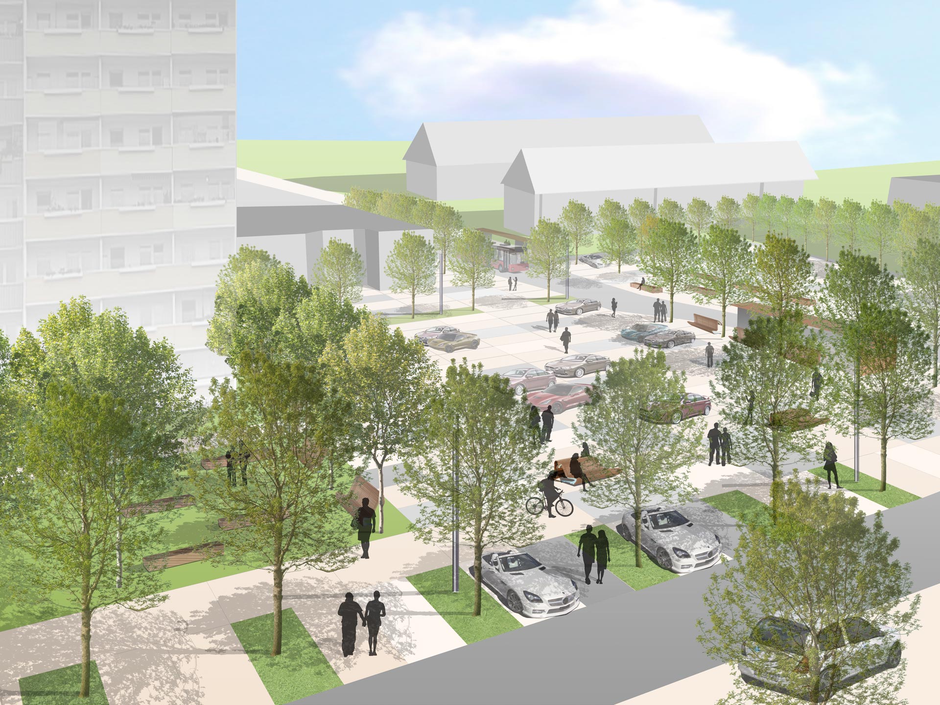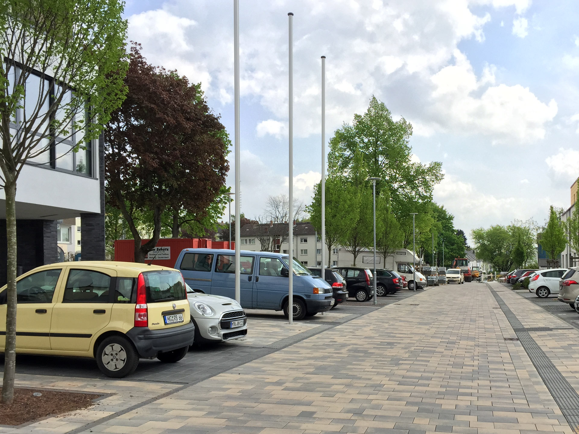 Die heterogene bauliche Struktur der Stadtmitte erfordert für die Ausbildung einer städtebaulichen Einheit eine starke, stadtgestalterische Grundebene. Diese wird aus Wege- und Platzflächen, die eine einheitliche Oberflächenbefestigung erhalten, gebildet. Dieser Stadtteppich dehnt sich über den gesamten zentralen Bereich aus.