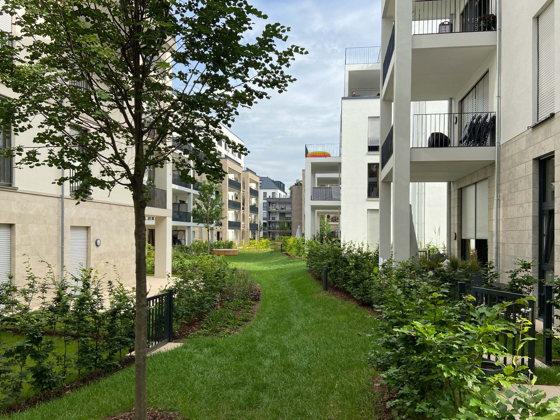 Der vorhandene Baumbestand kann nahezu vollständig in die Neugestaltung übernommen werden; das Quartier erhält so von Beginn an eine natürliche Komponente, die sich sehr positiv auf die Atmosphäre des gesamten Raumes und das Leitmotiv der „arkadischen VillenLandschaft“ auswirkt.